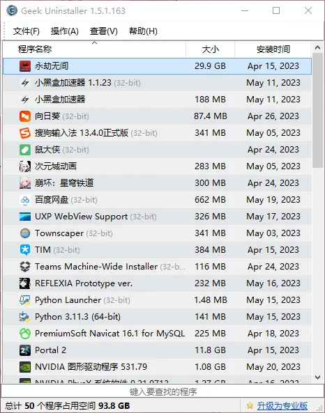 - Geek卸载软件可以强制卸载顽固和损坏的程序,支持本地化和微软商店应用的卸载